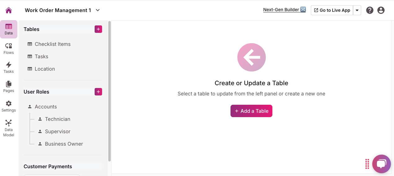 Upload your existing project and client data into Knack via CSV or sync from data sources like Microsoft Excel or Google Sheets by clicking the “+” next to the “Tables” header. Ensure you connect related data tables—such as project schedules with budgets—to streamline the software’s functionality.