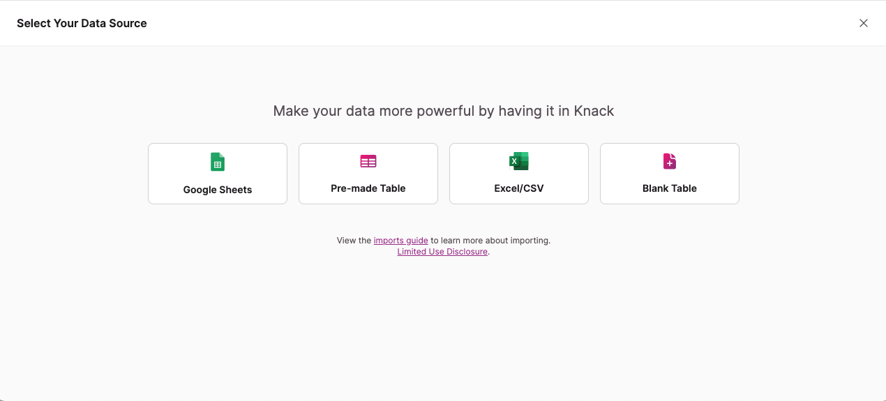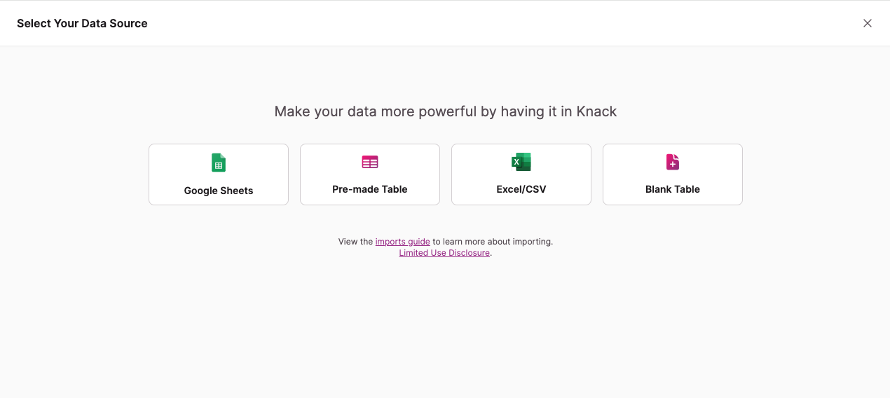 You can also import your Excel or Google Sheets file or use pre-made tables to expedite the process.