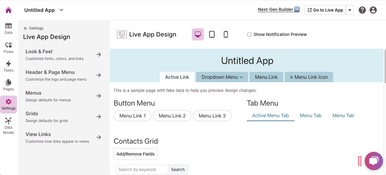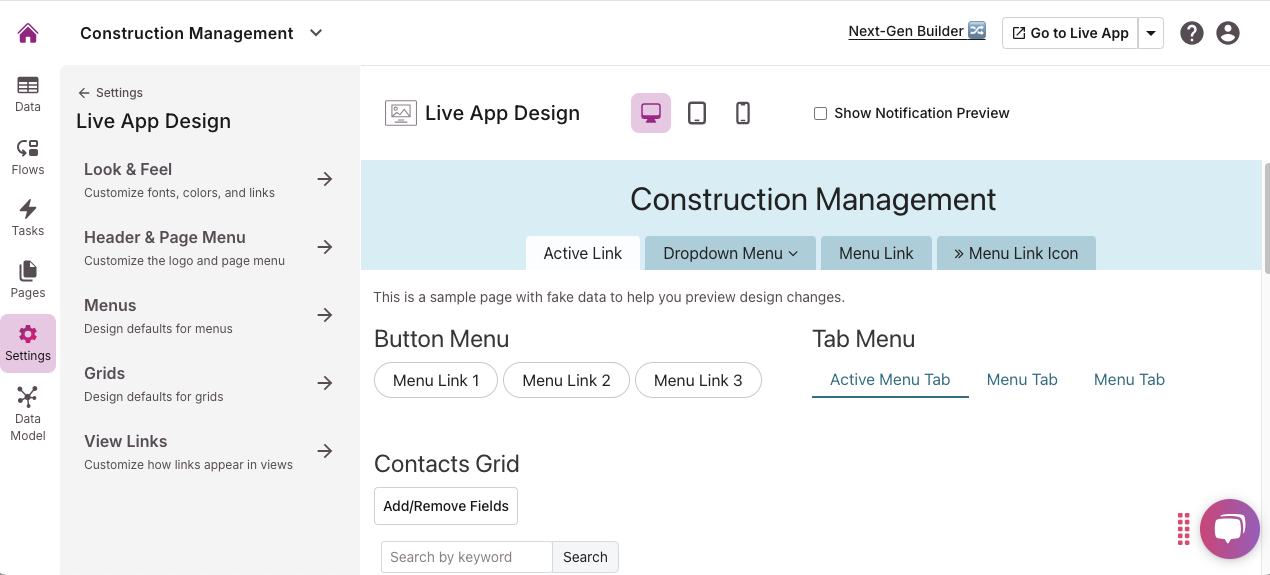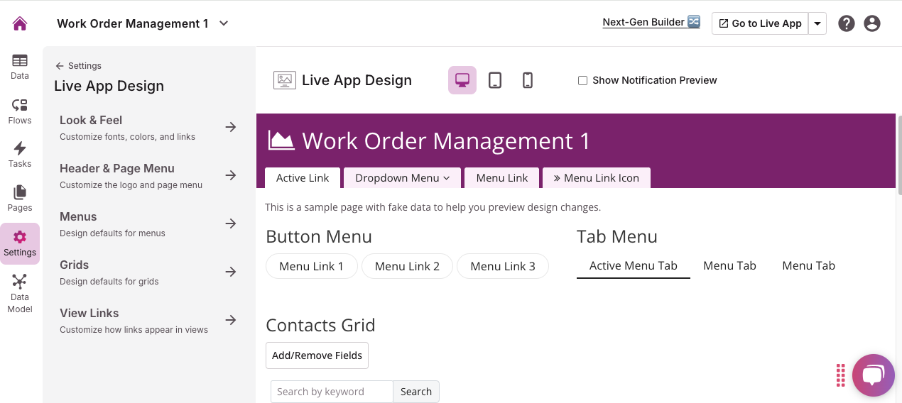Use Knack’s interface tools to brand your app with your company’s colors, fonts, and design elements.