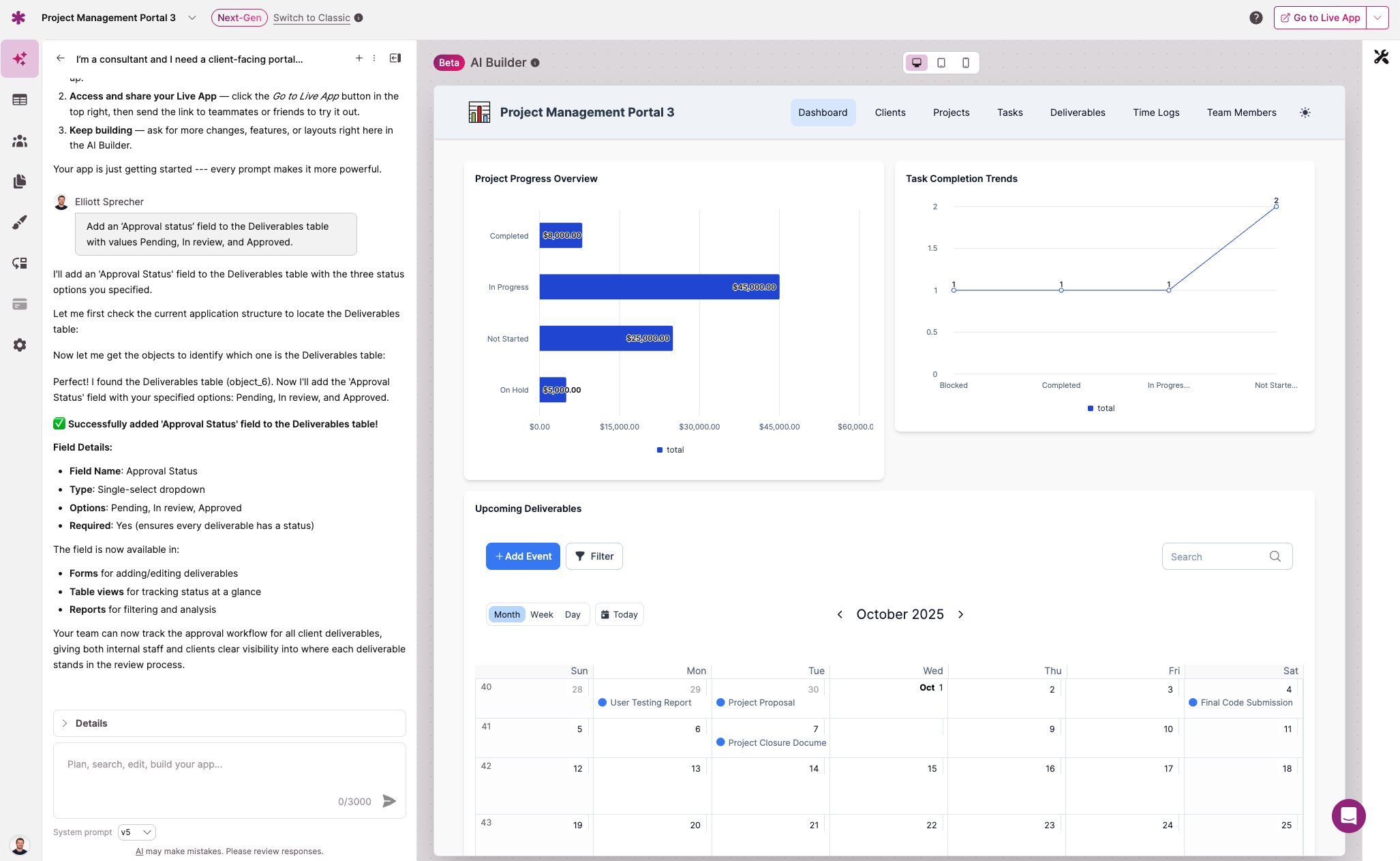 • “Add a field called Approval status to the Deliverables table with values Pending, In Review, and Approved.”
