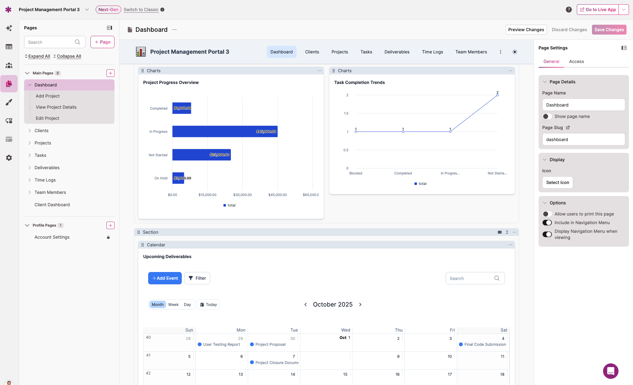 The new Page Editor introduces a true drag-and-drop interface that mirrors the Live App. You can work directly with layout blocks, preview changes in real time, and design pages that behave exactly as end users will see them. The new editor offers greater layout flexibility and a faster, more intuitive building process.