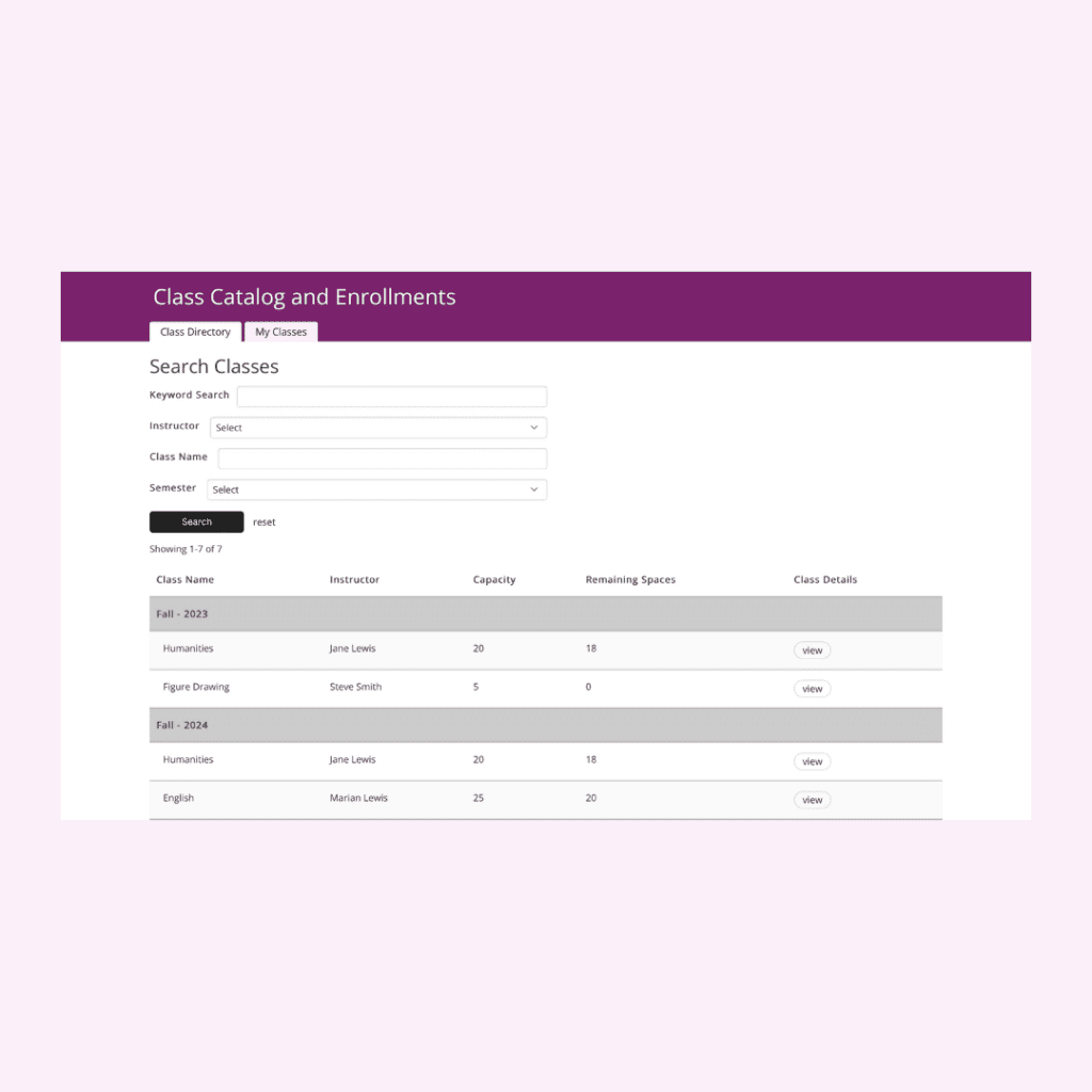 A class catalog and enrollments app provides a centralized platform to manage course catalogs, enrollments, and student records for schools, colleges, and universities. Unlike a spreadsheet, the app offers automated enrollment tracking, real-time updates, and easy access to course information, ensuring a more efficient and organized educational environment.
