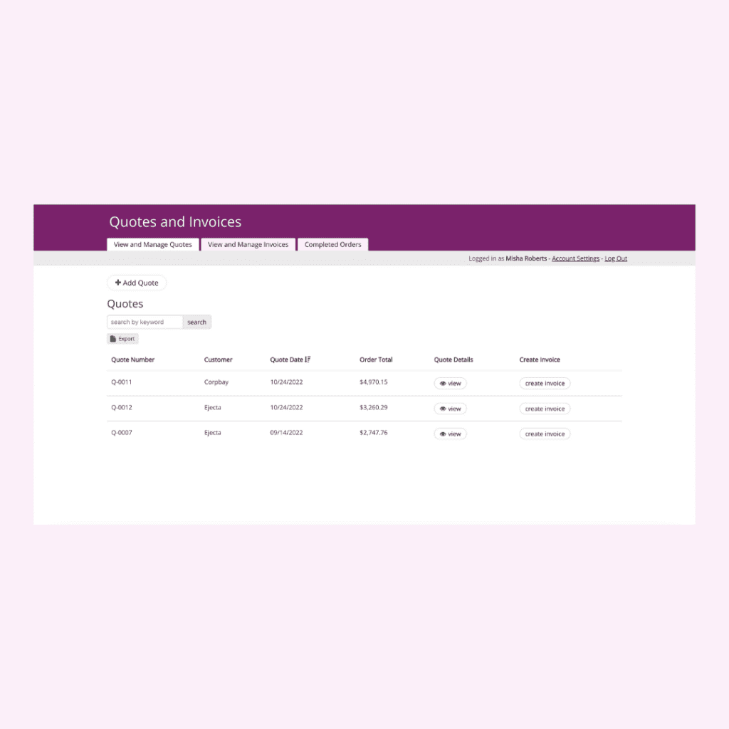 A quotes and invoices template app allows for automated tracking of incoming orders, including customer details, order dates, items, quantities, and prices. Unlike a spreadsheet, the app can automatically update order statuses, send order confirmations, and reduce manual entry errors, ensuring more efficient and accurate order management.