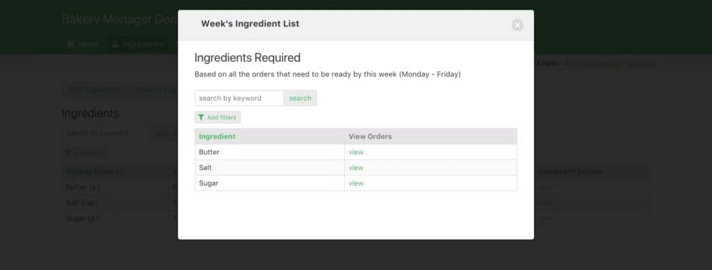The bakery manager also shows how a Knack inventory manager can be used for forecasting. As your customers order the products online, Knack offers you a single place to view all the ingredients needed to meet this week\’s demand.