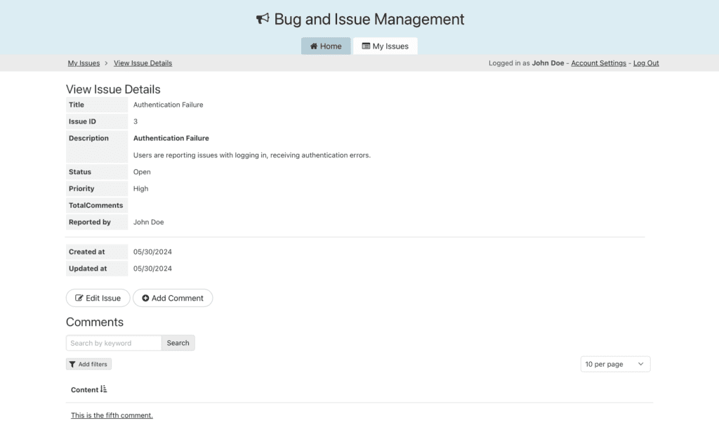 • Issue History Tracking: Record changes made to issues over time, including who made the changes, old and new statuses, and timestamps.