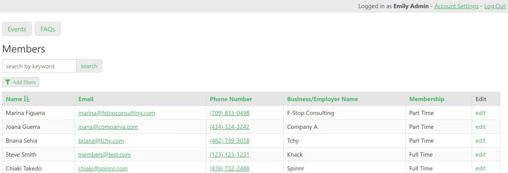 • Member security – When each member logs into their portal, they will only be able to edit the data connected to their account.