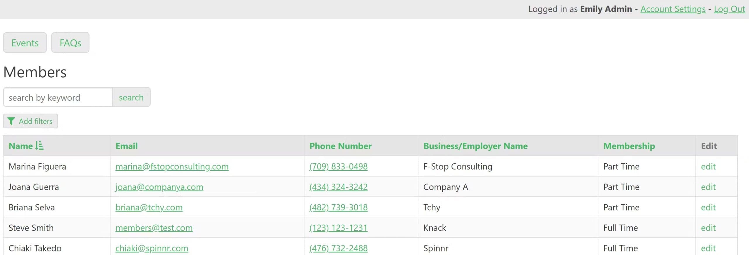 • Member security – When each member logs into their portal, they will only be able to edit the data connected to their account.