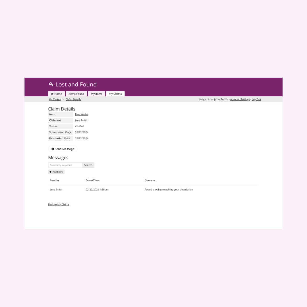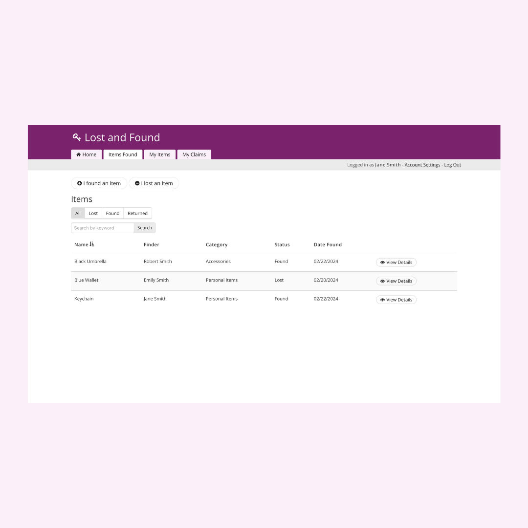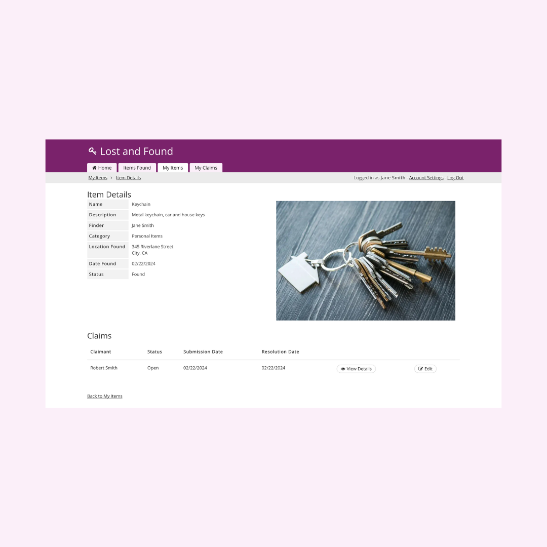 • Search for and claim items: Allow users to search for and claim items that they believe belong to them, improving the overall user experience and satisfaction.