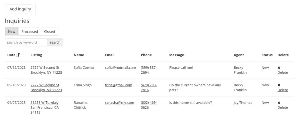 • Mobile friendly – Agents and brokers can check in on their listings and inquiries from anywhere.