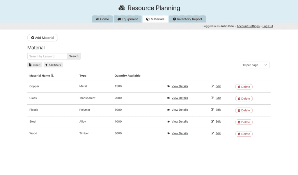 Manage material stock levels, monitor usage, and automate procurement processes to keep the planning process smooth and prevent material shortages.