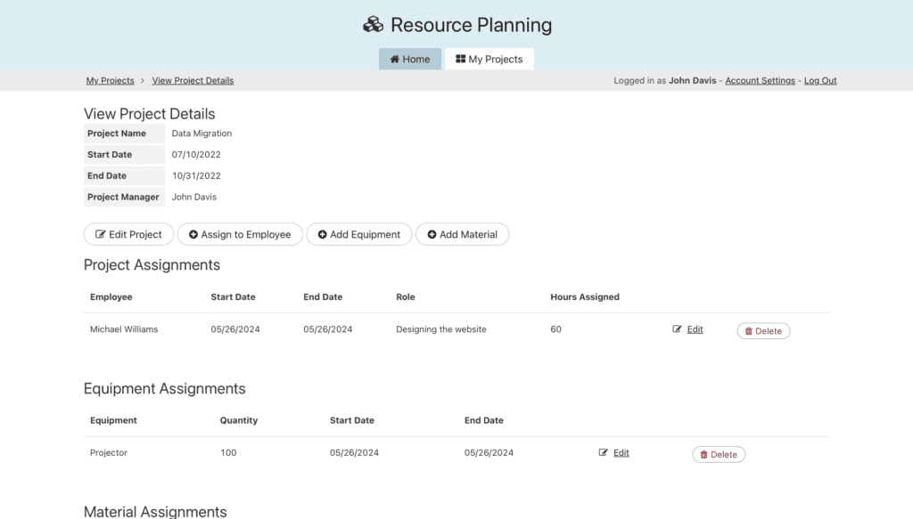 Assign team resources, equipment, and materials to projects based on availability, skills, and specific project requirements. This feature optimizes resource management, ensuring that each project has the necessary resources to succeed without overuse or underutilization.